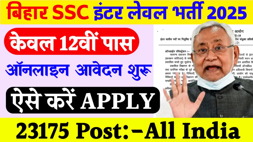 BSSC Inter Level Vacancy 2025: क्या आप बिहार राज्य में सरकार नौकरी प्राप्त करना चाहते है, तो आपके लिए बड़ी खबर निकल कर आ रही है बिहार कर्मचारी चयन आयोग (BSSC) द्वारा निम्नवर्गीय लिपिका, फाइलरिया इंस्पेक्टर, सहायक अनुदेशक जैसे विभिन्न 23,175 पदों पर भर्ती के लिए आधिकारिक अधिसूचना जारी की जा चुकी है इस भर्ती में उम्मीदवार 15 अक्टूबर 2025 से लेकर 25 नवंबर 2025 तक ऑनलाइन आवेदन कर पाएंगे|
