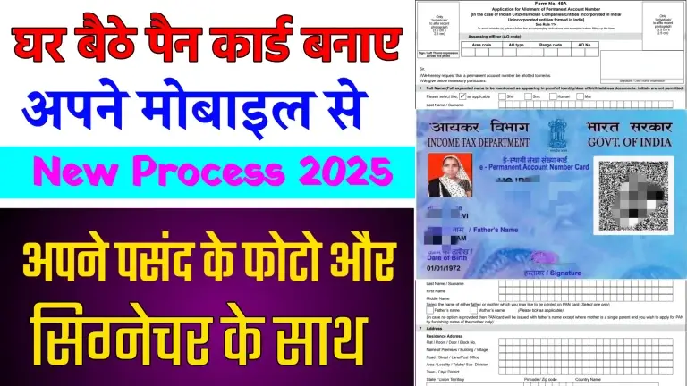 Pan Card Kaise Banaye 2025 : आज के युग में, पैन कार्ड (Permanent Account Number) एक महत्वपूर्ण दस्तावेज है, जो विभिन्न वित्तीय लेन-देन और सरकारी प्रक्रियाओं के लिए अनिवार्य है। यदि आप घर बैठे अपने मोबाइल या लैपटॉप से पैन कार्ड बनाना चाहते हैं, जिसमें आपकी अपनी मनपसंद की फोटो और हस्ताक्षर हों, तो आप इस आर्टिकल को अंत तक जरूर पढ़े इसमें हम पूरा जानकारी स्टेप by स्टेप बताये है|